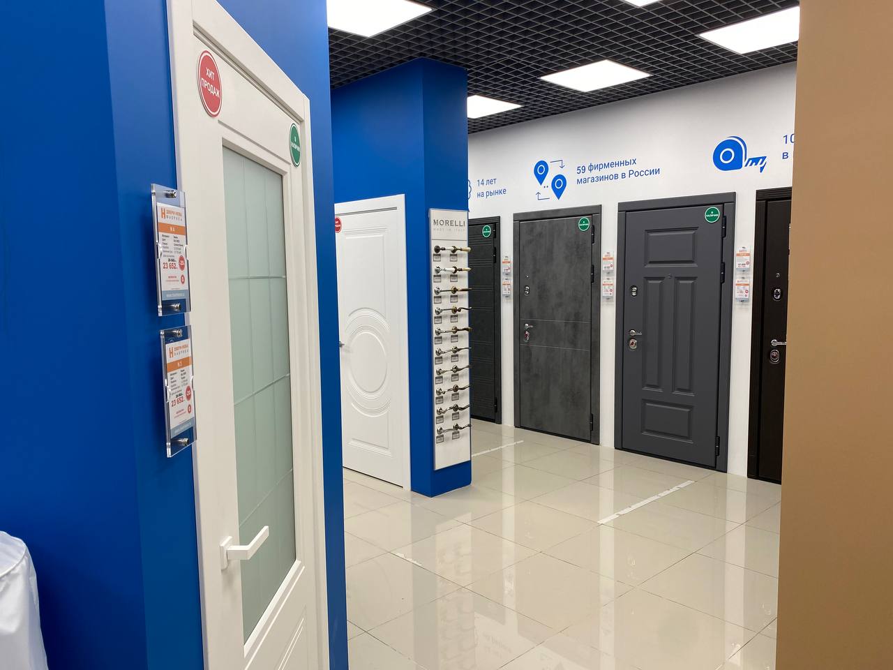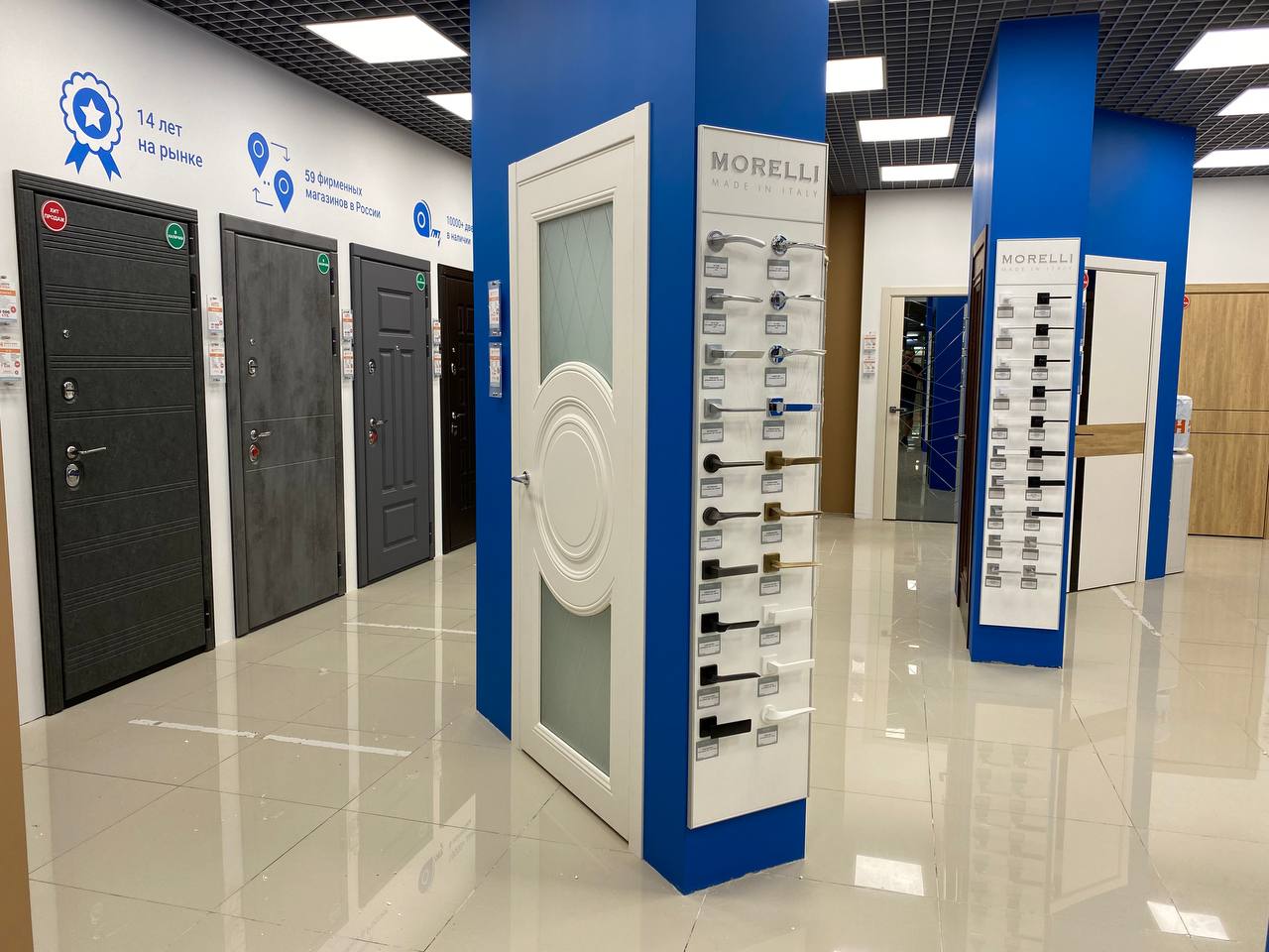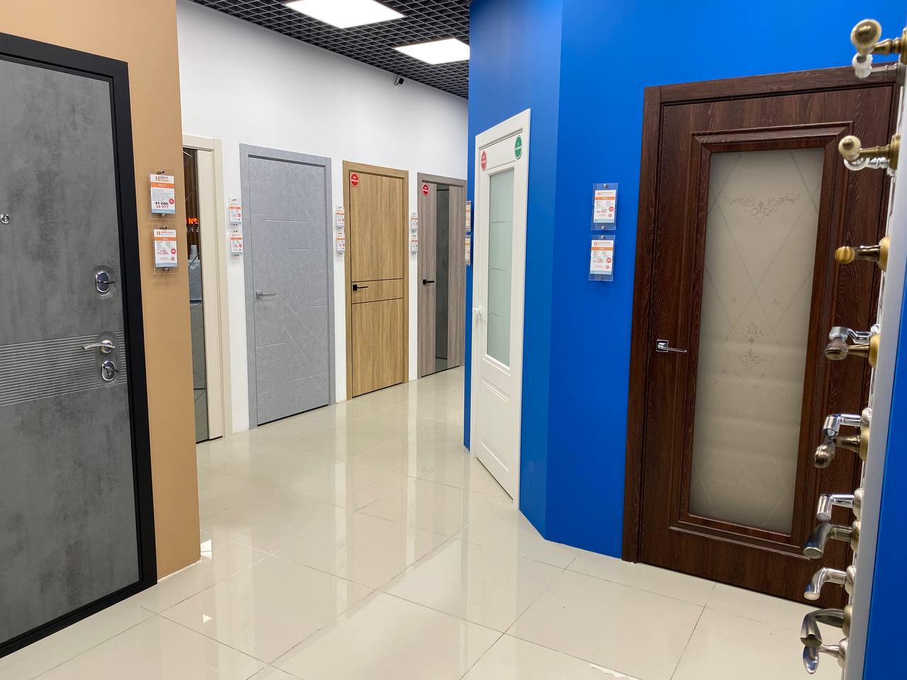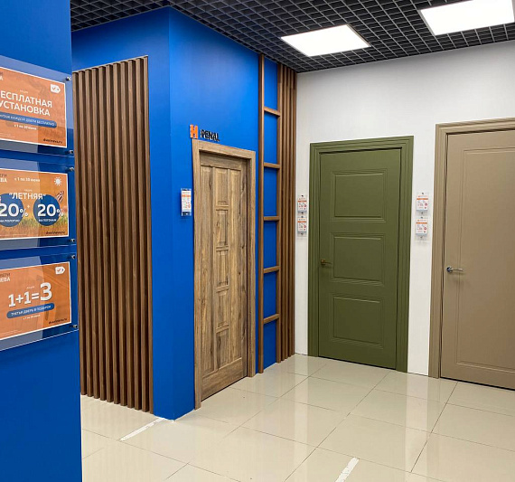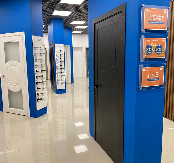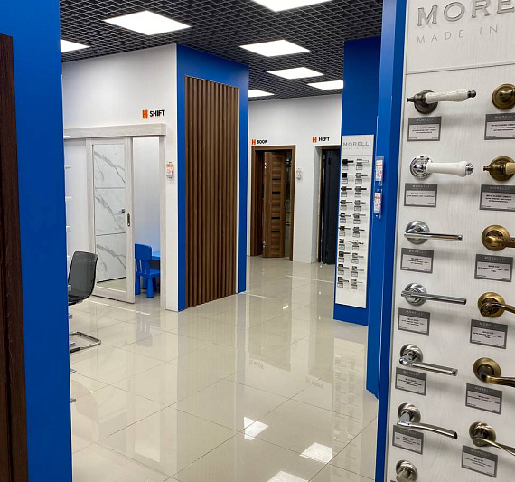 Кол-во образцов дверей в магазине: 55 межкомнатных, 9 входных