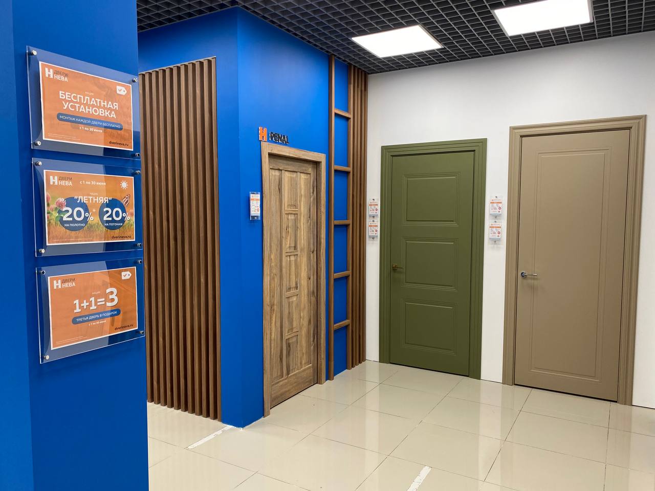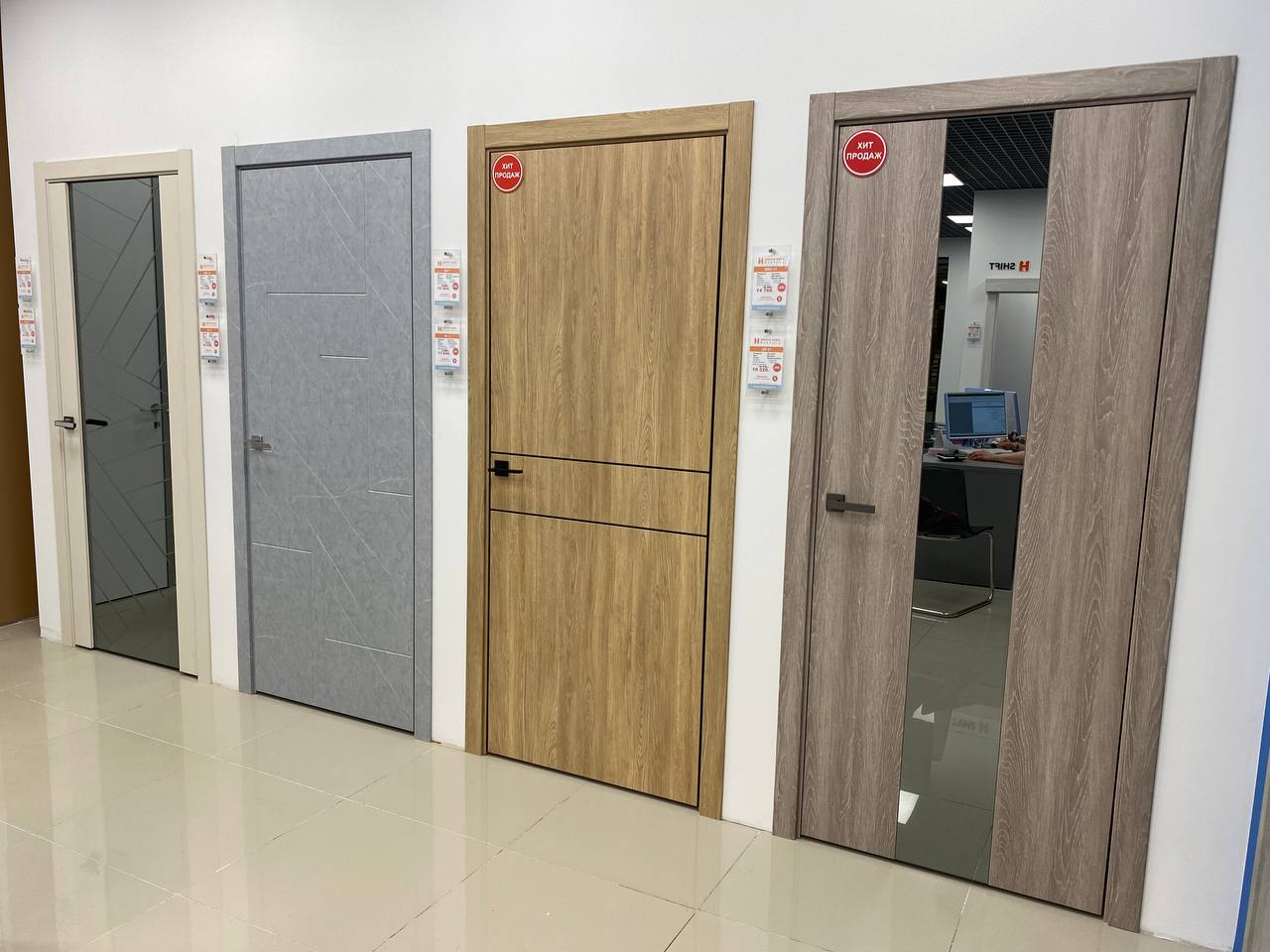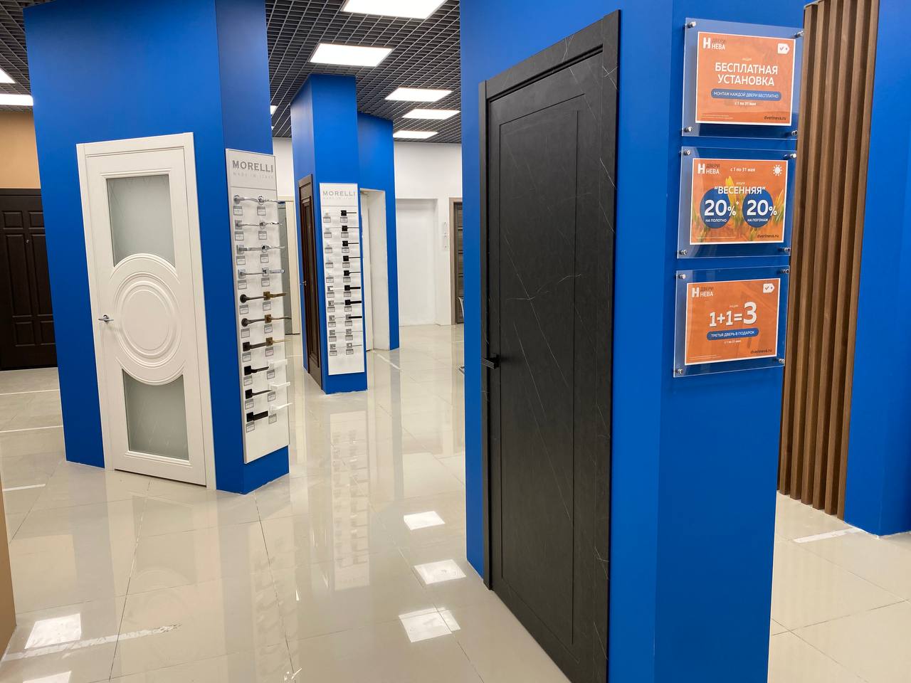 Кол-во образцов дверей в магазине: 55 межкомнатных, 9 входных